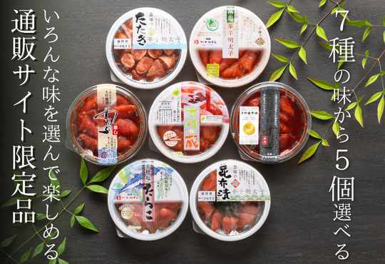 元祖“たれ漬け”辛子明太子の「香味の蔵」他こだわりの明太子をご用意しています。そのまま食べるも、焼いて食べるも、お客様の好きなスタイルで食していただいて、絶対にご満足いただける明太子と心から自慢できる商品だと思っております。